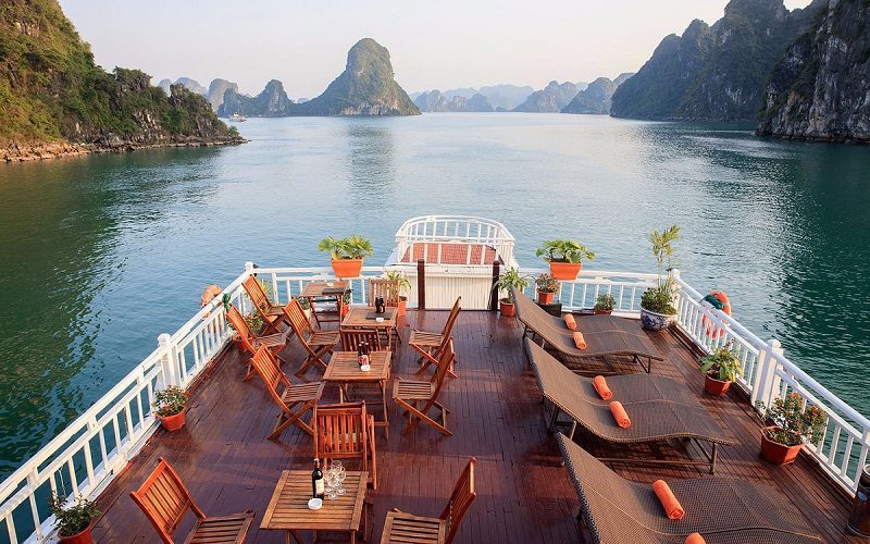 End of Ha Long Bay cruise itinerary at 12:00, disembark and return to Hanoi.